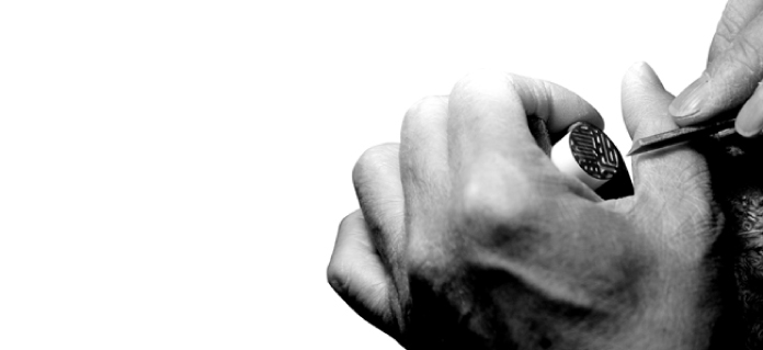 受け継いだ技術を守り、印章彫刻技術士が一刻一刻時間をかけて丁寧に手彫りで仕上げます。仕上げ刀を用い仕上げることにより、文字のアウトラインがより鮮明に文字のエッジが光ります。精魂込めて緻密な手彫り仕上げすることを使命感を持ってこだわり続けています。